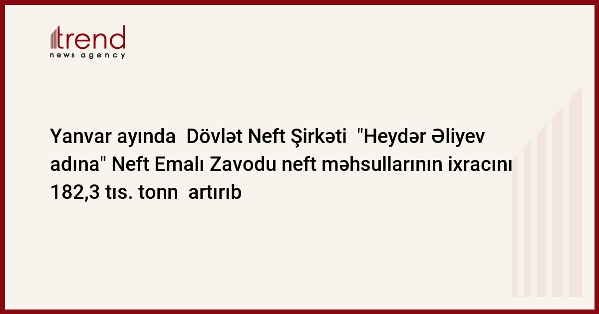 ARDNŞ-in məlumatlarına görə, yanvarda dünya bazarlarında neft məhsulları (FOB MED (Italy)) aşağıdakı qiymətə satılıb: avtomobil benzininin bir tonu $564,83 (dekabrdakı dəyərinə görə tonu $57,9), aviasiya kerosini bir tonu$583,48 (tonu $43,616), dizel yanacağı bir tonu $537,02 (tonu $28,53), mazutun 1 tonu $317,65 (tonu $29,4) .