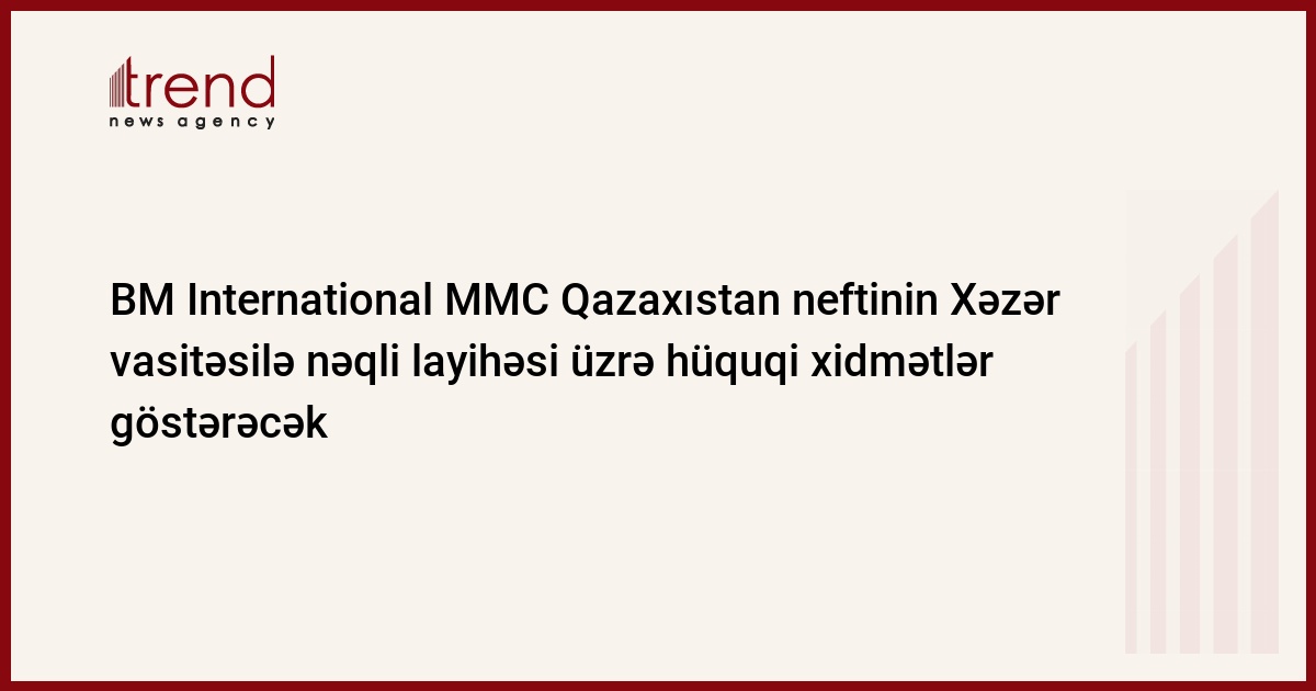 BM International MMC şirkəti yaxın vaxtlarda nəzərdə tutulan Bakı-Tbilisi-Ceyhan boru kəməri ilə Qazaxıstan neftinin Xəzər dənizi vasitəsilə nəqlini təmin etmək məqsədilə həyata keçirilməsi gözlənilən layihə üçün xarici hüquq məsləhətçisi kimi seçilib.