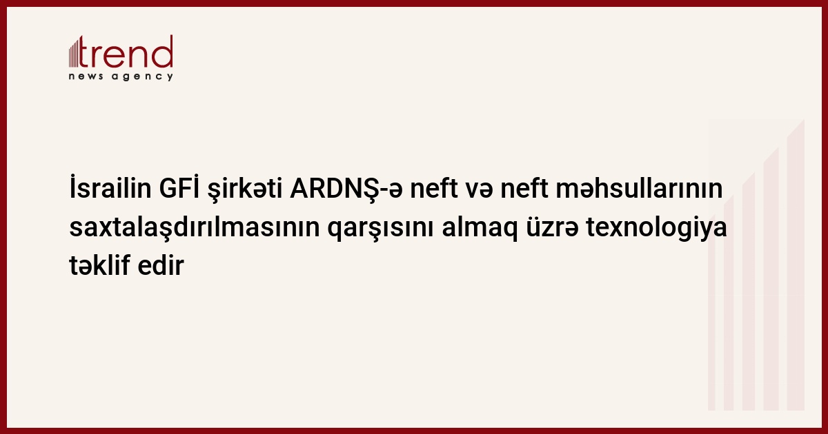 İsrailin GFİ şirkətinin nümayəndələri Azərbaycan Dövlət Neft Şirkətində neft və neft məhsullarının saxtalaşdırılmasının qarşısını almaq üçün onların nişanlanması üzrə yeni texnologiyanın təqdimat mərasimini keçirib. Trend in xəbər verdiyi kimi, bu barədə ARDNŞ-in mətbuat xidmətindən məlumat verilib. Təqdimat mərasimində ARDNŞ rəhbərliyinin nümayəndələri və mütəxəsisləri iştirak edib.