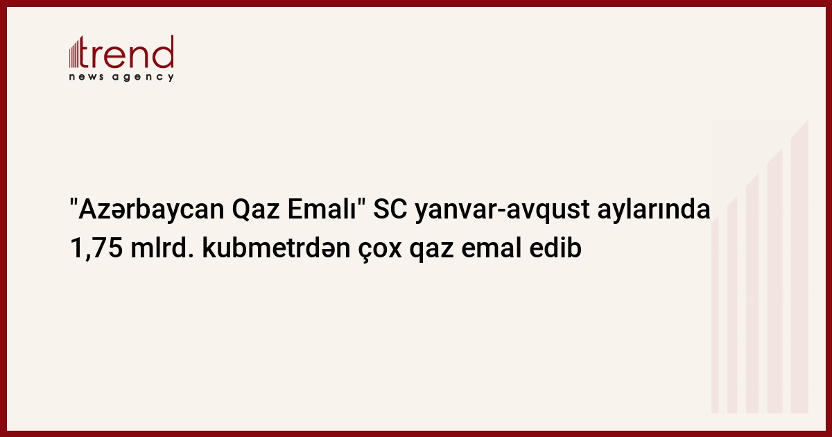 "Azərbaycan Qaz Emalı" SC (Azərbaycan qaz emalı zavodu) 2006-cı ilin yanvar-avqust aylarında 1,772 mlrd. kubmetr qaz emal edib, 2005-ci ilin analoji dövründə isə bu göstərici 1,85 mlrd. m3 təşkil edib. Bu barədə Trend ə zavoddan məlumat verilib.