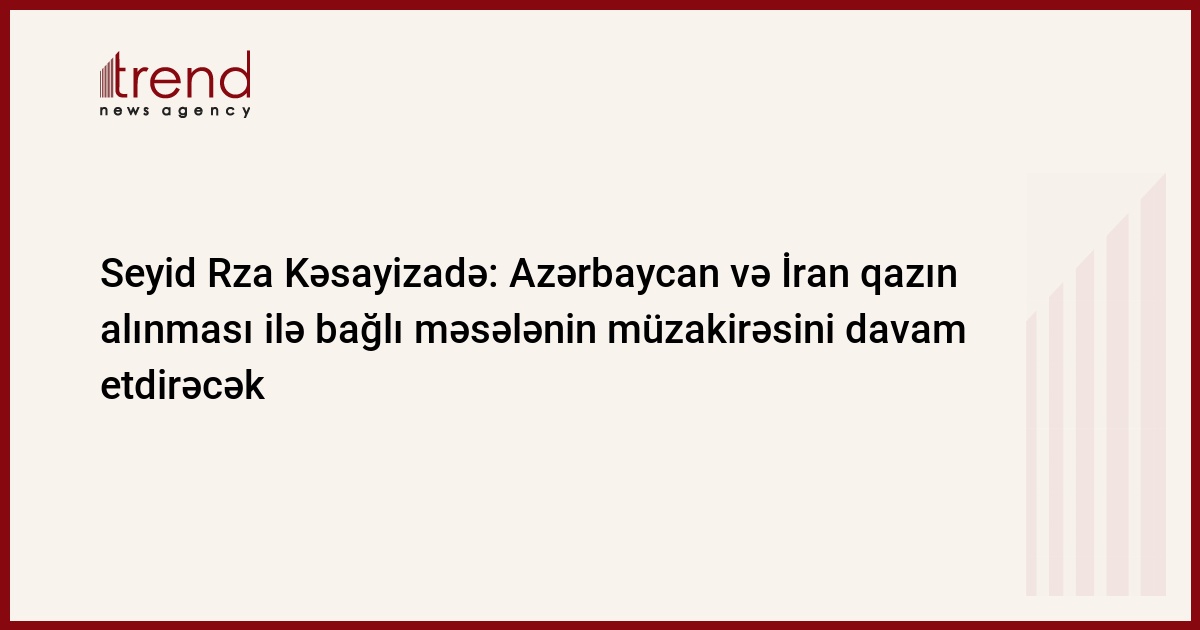 İranın milli qaz şirkətinin rəhbəri Seyid Rza Kəsayizadə Azərbaycana qazın ixracı məsələsi ilə bağlı danışıqların davam etdiriləcəyi barədə bəyan edib. Bununla bağlı Trend in Tehrandakı xüsusi müxbiri "Fars" agentliyinə istinadən xəbər verir. Danışıqlar Azərbaycan nümayəndə heyəti ilə aparılır.