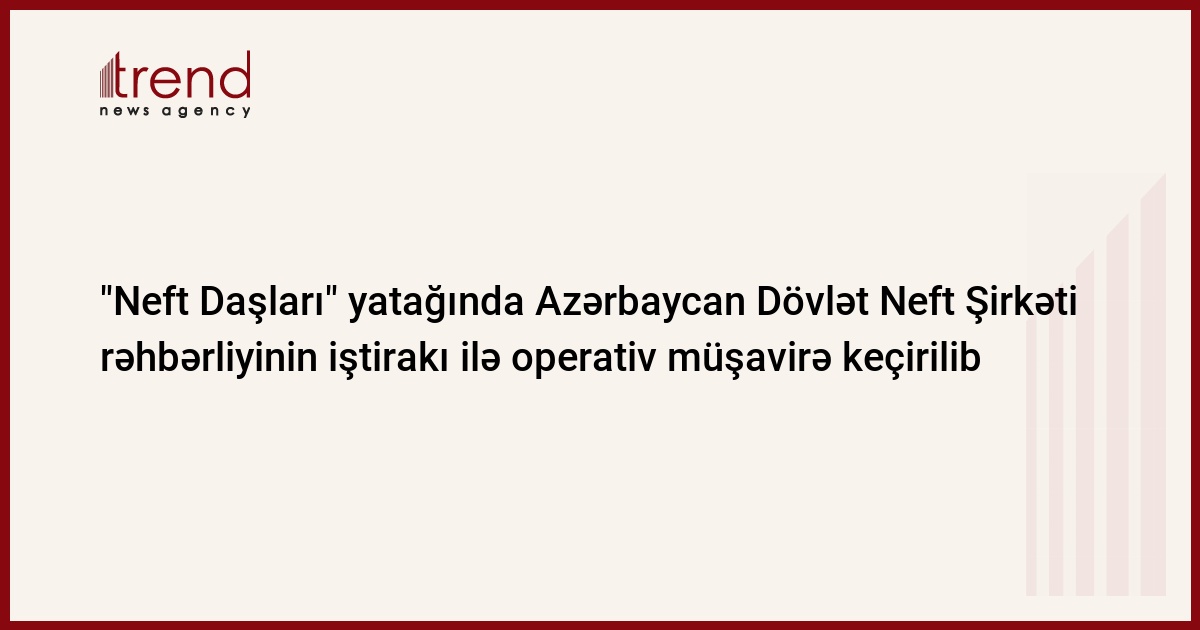 Azərbaycan Dövlət Neft Şirkətinin (ARDNŞ) rəhbərliyi ARDNŞ prezidenti Rövnəq Abdullayevin başçılığı ilə "Neft Daşları" dəniz yatağında olub. Trend xəbər verir ki, bu barədə ARDNŞ-in mətbuat xidmətindən məlumat verilib. Şirkət nümayəndələri artıq təmir olunmuş yataqxana ilə tanış olublar.