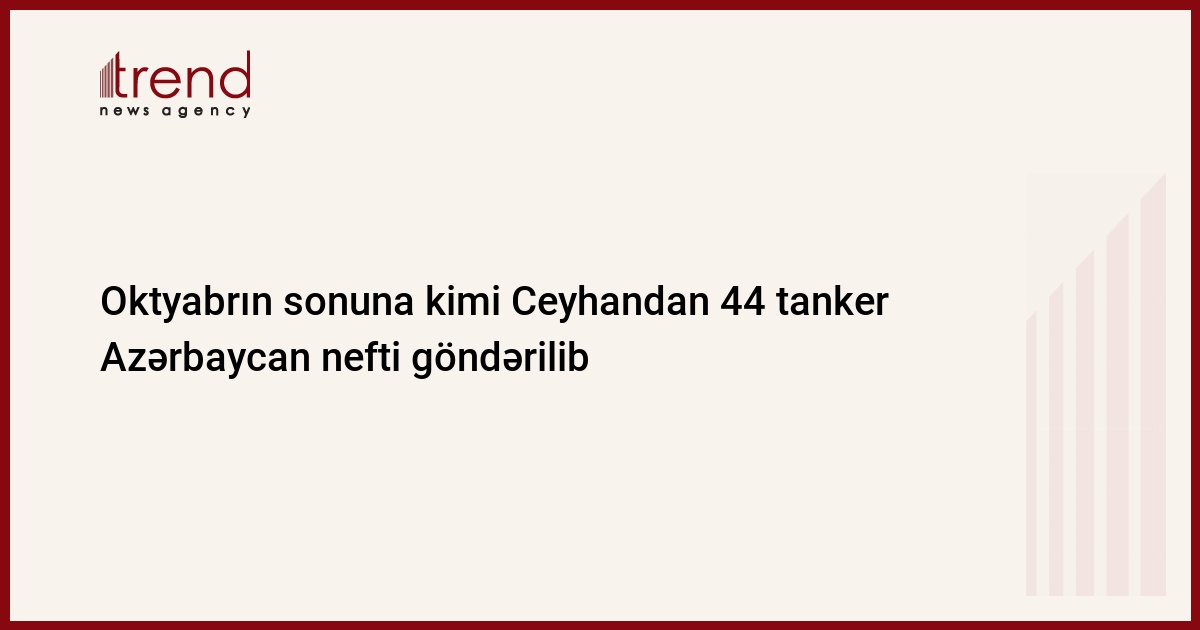 Bu ilin oktyabr ayı ərzində Türkiyənin Ceyhan limanından Bakı-Tiflis-Ceyhan boru kəməri ilə nəql olunmuş 1 milyon 058,030 min ton neft göndərilib. Bunu Trend -ə BR Azerbaijan şirkətindən bildiriblər. Bu həcm neft 12 tanker partiyası ilə satılıb.