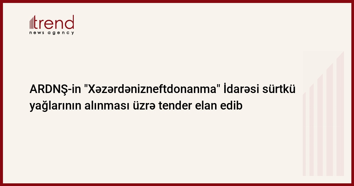 ARDNŞ-in "Xəzərdənizneftdonanma" İdarəsi öz gəmiləri üçün motor sürtkü yağlarının alınması üzrə açıq tender elan edib. Trend in xəbər verdiyi kimi, bu barədə İdarədən məlumat verilib.