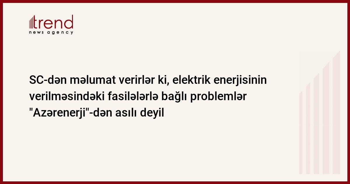 "Azərenerji" səhmdar cəmiyyətinin elektrik enrjisi istehsalı üzrə idarəsinin rəhbəri Şıxməmməd Aslanov Bakı və Abşeron yarımadasında enerji təchizatı problemləri ilə bağlı elektrik stansiyalarında təmir işlərinin aparılması haqqında yayılan məlumatı qəti surətdə rədd edir və iradını bildirir. Trend -in məlumatına görə bu haqda, "Azərenerji" səhmdar cəmiyyətinin mətbuat xidmətindən bildiriblər.