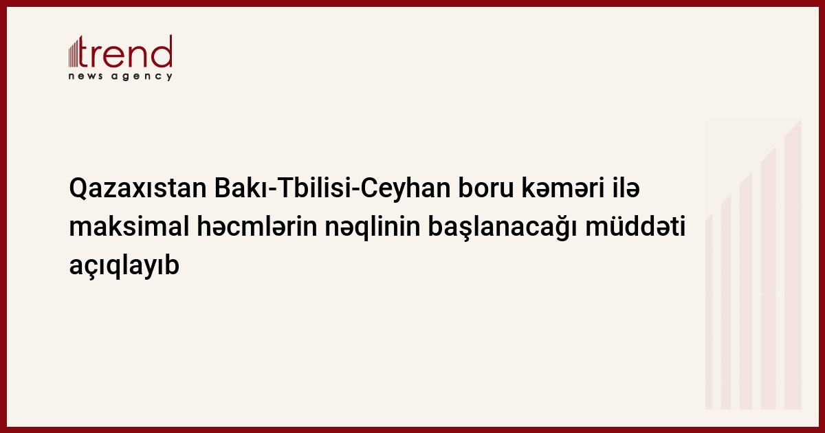 Bakı-Tbilisi-Ceyhan (BTC) boru kəməri ilə Qazaxıstan neftinin nəqli 2009-cu ilin sonunda - 2010-cu ilin əvvəlində başlayacaq. Bu barədə Trend in Astanadakı xüsusi müxbiri AB və Qara və Xəzər dəniz ölkələri arasında enerji əməkdaşlığı üzrə ikinci nazirlər konfransında Qazaxıstanın energetika naziri Baktıkoja İzmuxambetov bildirib.