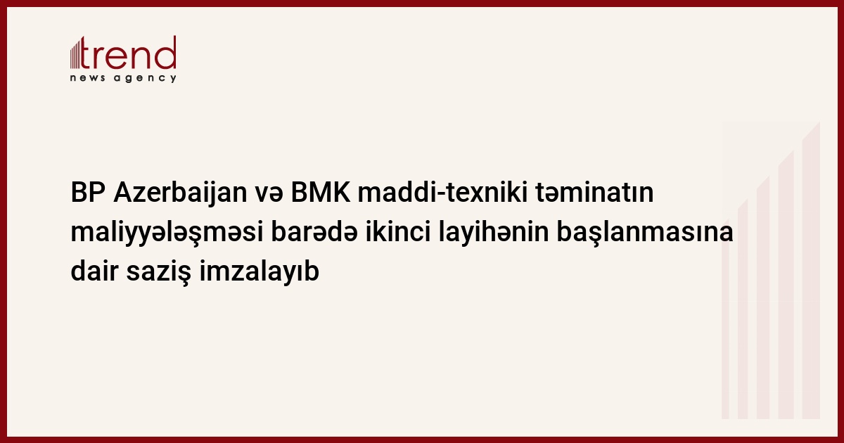 BP Azerbaijan və Beynəlxalq Maliyyə Korporasiyası (BMK) 16,2 mln. dollar məbləğində maddi-texniki təminatın (SFF-2) maliyyələşməsi barədə ikinci layihənin başlanmasına dair saziş imzalayıb. Bu barədə Trend ə bu gün BP Azerbaijanın meneceri Maykl Hoffman xəbər verib.