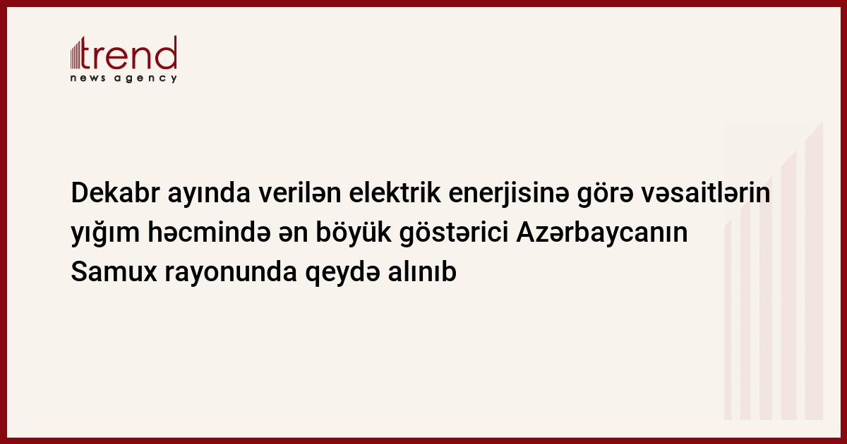 2006-cı il dekabr ayının nəticələrinə görə, "Azərenerji" SC-nın idarə etdiyi şəbəkələr üzrə verilən elektrik enerjisinə görə vəsaitlərin yığım həcmində ən byöük göstərici Azərbaycanın Samux rayonunda qeydə alınıb. Bu göstərici 10852 abunəçi üçün 80,9% təşkil edib. Bu barədə Trend ə "Azərenerji"dən bildiriblər.