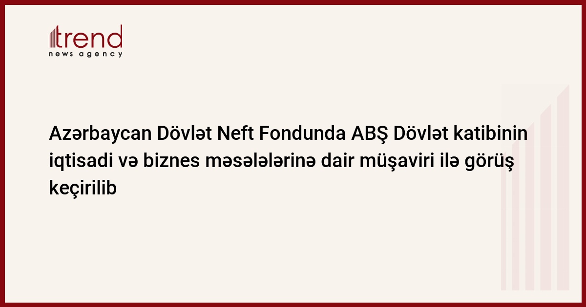 Azərbaycan, Bakı/ Trend / Bu gün Azərbaycan Respublikası Dövlət Neft Fondunda (ARDNF) fondun icraçı direktoru Şahmar Mövsümov ABŞ Dövlət katibinin iqtisadi, energetika və biznes məsələlərinə dair müşaviri Deniel Sallivanla görüşüb. Bu barədə xəbər fondun yaydığı məlumatda göstərilib.