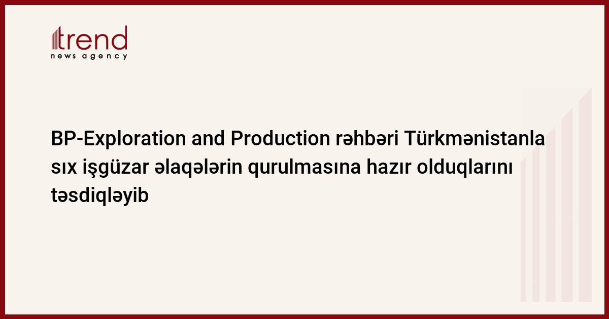 BP rəhbəri öz şirkətinin Türkmənistanla sıx işgüzar əlaqələrin qurulmasında maraqlı olduğunu və buna hazır olduğunu bildirib. İnqliş Türkmənistan prezidentini neft hasilatında, həmçinin dəniz şelfində hasilatda ixtisaslaşan "BP-Exploration and Production" şirkətinin fəaliyyəti ilə tanış edib.
