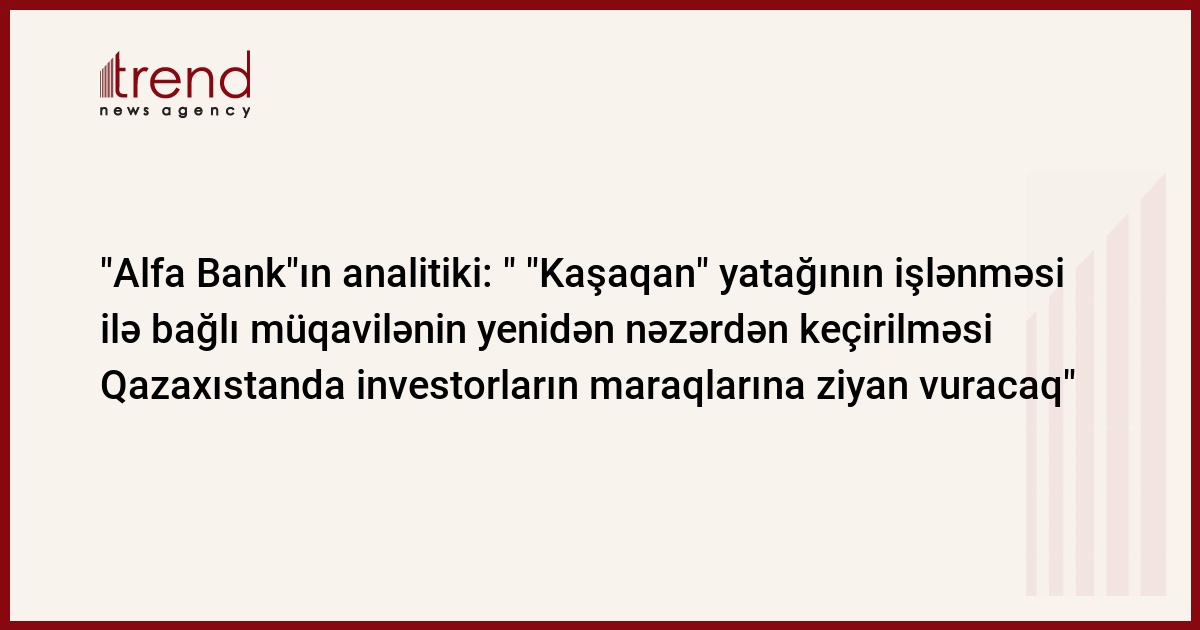 ""Kaşaqan" yatağının işlənməsi ilə bağlı müqavilənin yenidən nəzərdən keçirildiyi tədqirdə Qazaxıstanda potensial və faktiki investorların maraqlarına ziyan dəyəcək, müqavilə isə mütləq nəzərdən keçirləcək" - deyə analitik cümə axşamı telefonla bildirib.