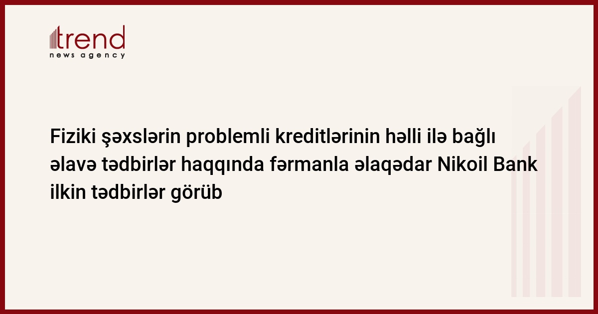 Prezident İlham Əliyevin “Azərbaycan Respublikasında fiziki şəxslərin problemli kreditlərinin həlli ilə bağlı əlavə tədbirlər haqqında” fərmanı ilə əlaqədar Nikoil Bank tərəfindən ilkin tədbirlər görülüb.