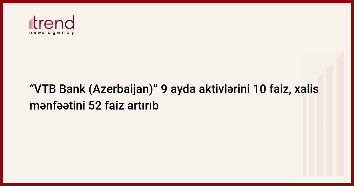 "VTB Bank (Azerbaijan)” ASC 2021-ci ilin yanvar-sentyabr aylarında aktivlərini 10% - 206 milyon 151,89 min manata qədər artırıb. Bu barədə bankın hesabatında qeyd olunur.