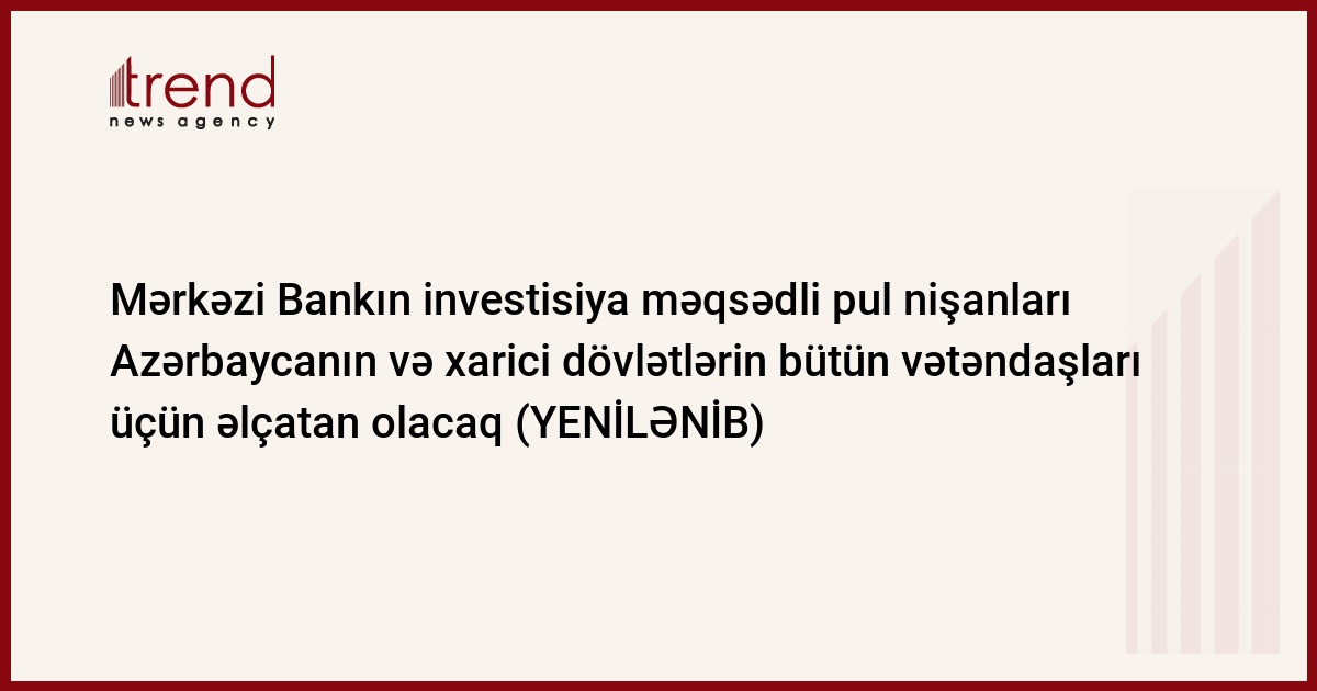 Mərkəzi Bankın investisiya məqsədli pul nişanları Azərbaycanın və xarici dövlətlərin bütün vətəndaşları üçün əlçatan olacaq.