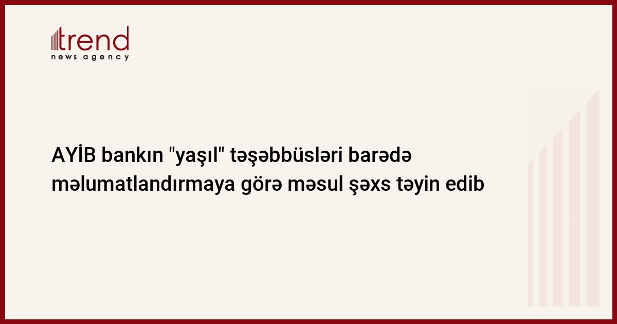 Avropa Yenidənqurma və İnkişaf Bankının (AYİB) Qərbi Balkanlar və Azərbaycan üzrə ictimaiyyətlə əlaqələr üzrə kuratoru Rezo Bitsadze bankın "yaşıl" təşəbbüsləri barədə məlumatlandırmaya görə məsul şəxsi təyin olunub.