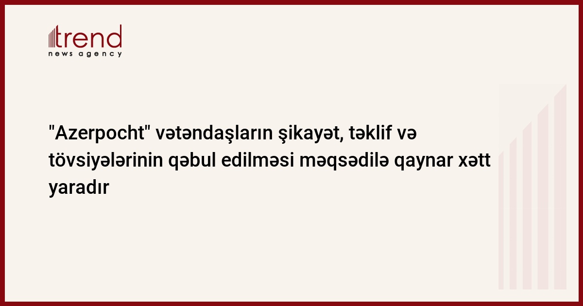 Azərbaycan, Bakı / Trend / Azərbaycanın Rabitə və İnformasiya Texnologiyaları nazirliyi "Azerpocht" Dövlət Müəssisəsi əhaliyə göstərilən xidmətlərin səmərəsinin artırılması məqsədilə, dekabrın 3-dən başlayaraq, saat 10:00-dan 12:00-dək "Qaynar xətt" təşkil edəcək.