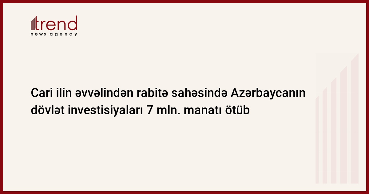 Azərbaycanın Rabitə və İnformasiya Texnologiyaları Nazirliyindən (RİTN) bazar ertəsi verilən məlumata görə, bu dövr ərzində İdarənin əsas müəssisələri "Aztelekom" İB-ya 5086,2 min manat, "Bakı telefon rabitə" İB-ya 1924,1 min manat, "Teleradio" İB-ya 208,2 min manat, "Azərpoçt" DM-ya 255,1 min manat, İnformasiya-Hesablama Mərkəzinə 90,8 min manat, Radiotezlik üzrə Dövlət İdarəsinə 166,4 min manat, Beynəlxalq Əlaqələr və Hesablamalar Mərkəzinə isə 73,2 min manat sərmayə yatırılıb.