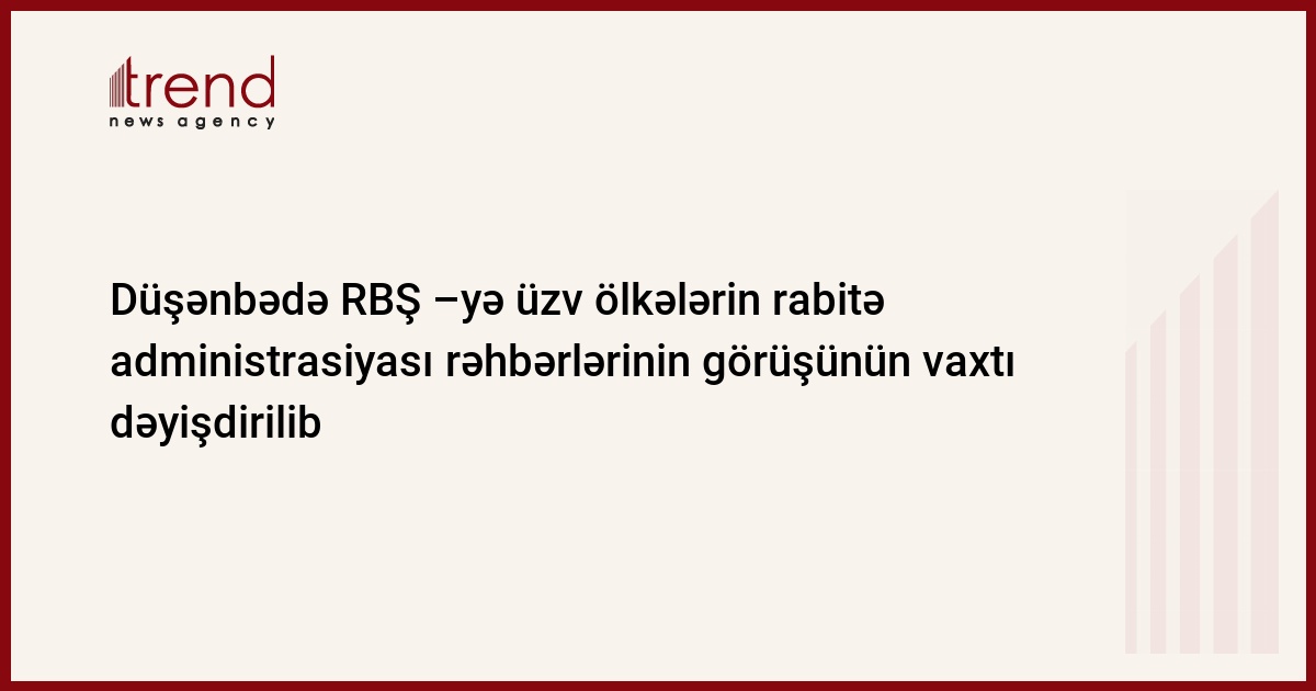 Azərbaycan, Bakı, 21 may / Trend , müxbir S.Babayeva/ Rabitə sahəsində Regional Birlik Şurasının (RBŞ) 39-cu və İnformasiyalaşdırma üzrə Koordinasiya Şurasının 13-cü iclaslarının vaxtı dəyişdirilib. Təşkilatdan verilən məlumata görə, görüşün vaxtı bir qələr sonra razılaşdırılacaq.