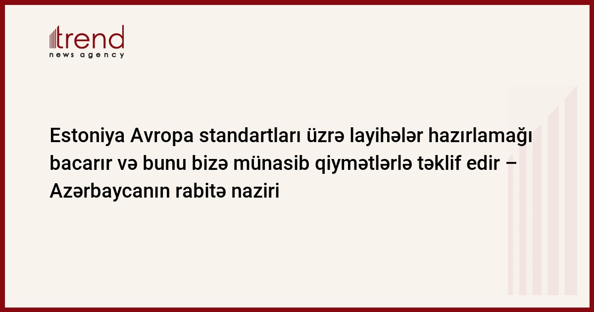 "Bu, geniş layihədir və bütün sərmayədarlar üçün əlverişli iş şəraiti yaradılacaq", - Azərbaycanın rabitə naziri çərşənbə günü Estoniyanın iqtisadiyyat və kommunikasiya naziri Yuxan Partsın rəhbərlik etdiyi nümayəndə heyəti ilə görüşdə bildirib.