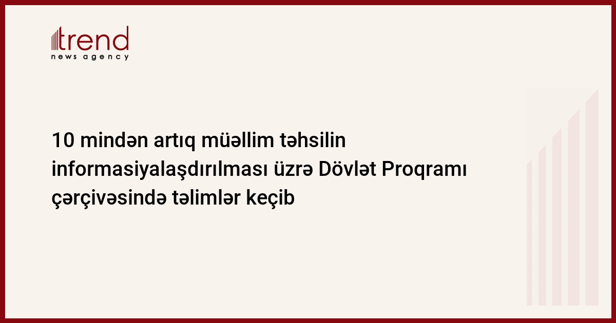 "Məktəb direktorları, tədris hissə müdirləri, rayon təhsil şöbələrinin nümayəndələri, pedaqoji ixtisas artırma təhsil müəssələrinin əməkdaşları da daxil olmaqla 8,7 min müəllim, 1,8 min inzibati işçi dövlət proqramı çərçivəsində təlimlər keçib", - deyə Məmmədov qeyd edib.