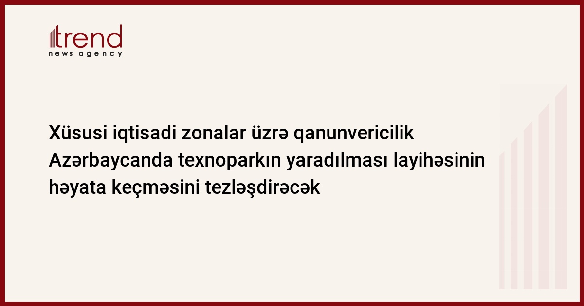 Azərbaycan Parlamenti tərəfindən xüsusi iqtisadi zonalar üzrə qəbul edilmiş qanun respublikada texnoparkın yaradılması üçün istinad nöqtəsi olacaq. Bu barədə jurnalsitlərə rabitə və informasiya texnologiyaları nazirinin müavini Elmir Vəlizadə bildirib.