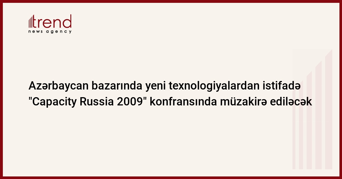 Azərbaycan, Belarus, Qazaxıstan, Tacikistan, Ukrayna və Özbəkistanın genişlənən bazarlarında yeni texnologiyalardan istifadənin üstünlük təşkil etməsi "Capacity Russia 2009" konfransının əsas müzakirə mövzularından biri olacaq. Konfrans 5-6 oktyabrda Moskvada keçiriləcək. Bu barədə Rabitə və İnformasiya Texnologiyaları Nazirliyi məlumat verir.