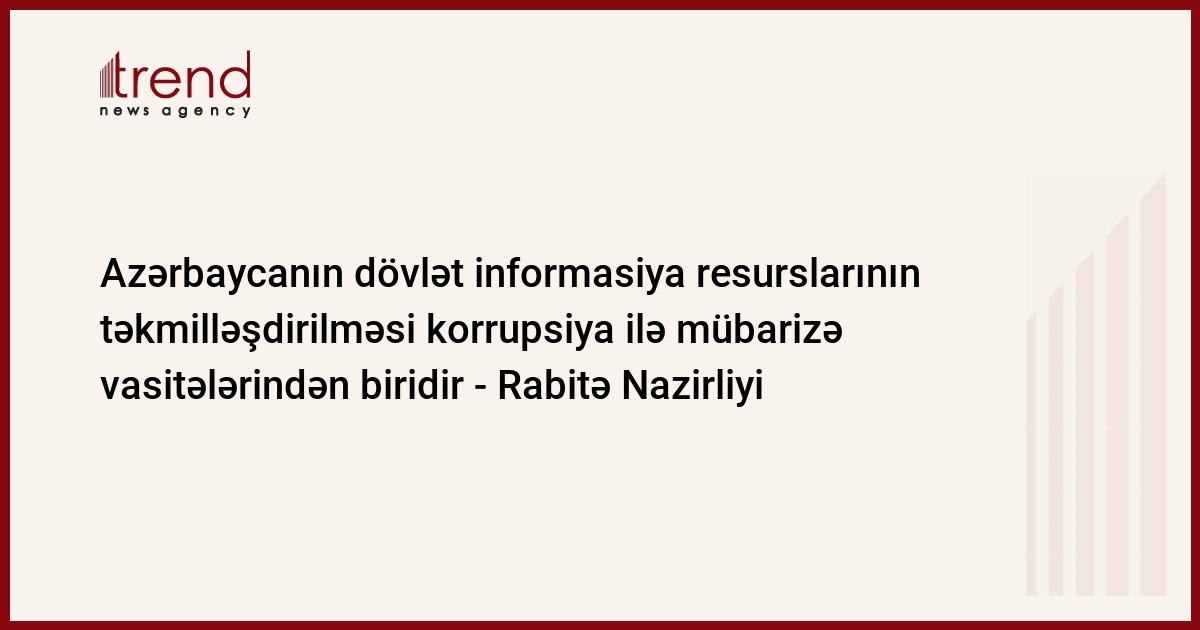 Dövlət informasiya resurslarının təkmilləşdirilməsi korrupsiya ilə mübarizənin əsas vasitələrindən biridir, bu barədə Trend -a Rabitə və İnformasiya Texnologiyaları Nazirliyinin Kadr və hüquq şöbəsinin rəisi Bəxtiyar Məmmədov bildirib.