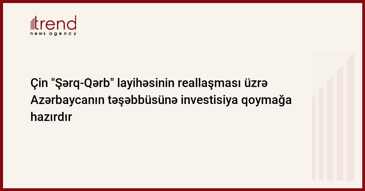 Çin "Şərq-Qərb" informasiya supermagistralının çəkiliş layihəsinin reallaşmasına investisiya qoymağa hazırdır. Bu barədə Rabitə və İnformasiya Texnologiyaları Nazirliyinin bazar ertəsi yaydığı məlumatda bildirilir.