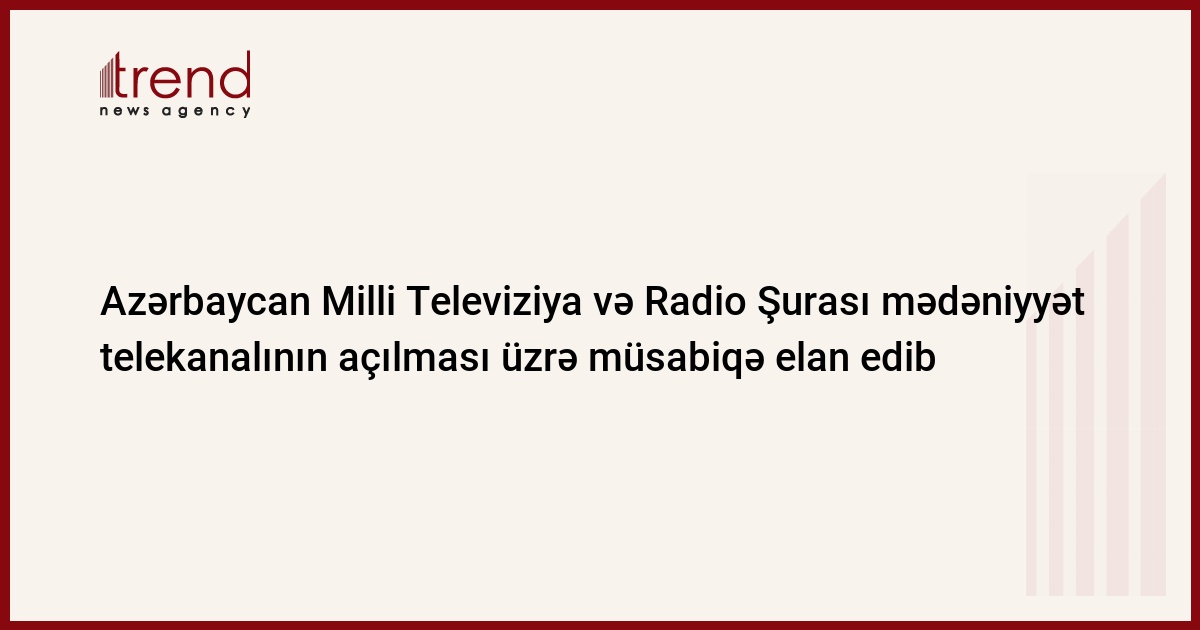 "Televiziya və Radio haqqında" Qanunun 15-ci bəndinə uyğun olaraq, ölkənin Milli Televiziya və Radio Şurası (MTRŞ) ixtisaslaşmış mədəniyyət telekanalının açılışı üzrə müsabiqə elan edib. Bu barədə MTRŞ-in məlumatında deyilir.