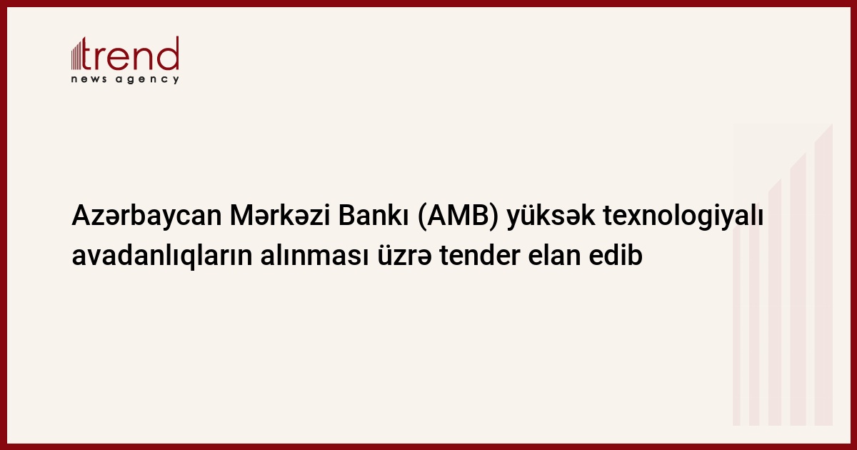 Azərbaycan Mərkəzi Bankı (AMB) yüksək texnologiyalı avadanlıqların alınması üzrə tender elan edib. Bu barədə bankın tender komissiyasının məlumatında deyilir.