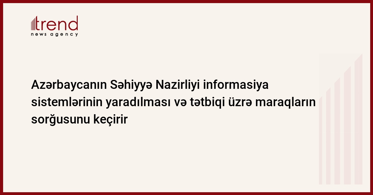 Azərbaycanın Səhiyyə Nazirliyi "Səhiyyə sahəsində islahatlar" layihəsi çərçivəsində elektron informasiya sistemlərinin yaradılması və tətbiqi üzrə maraqların sorğusunu keçirir.