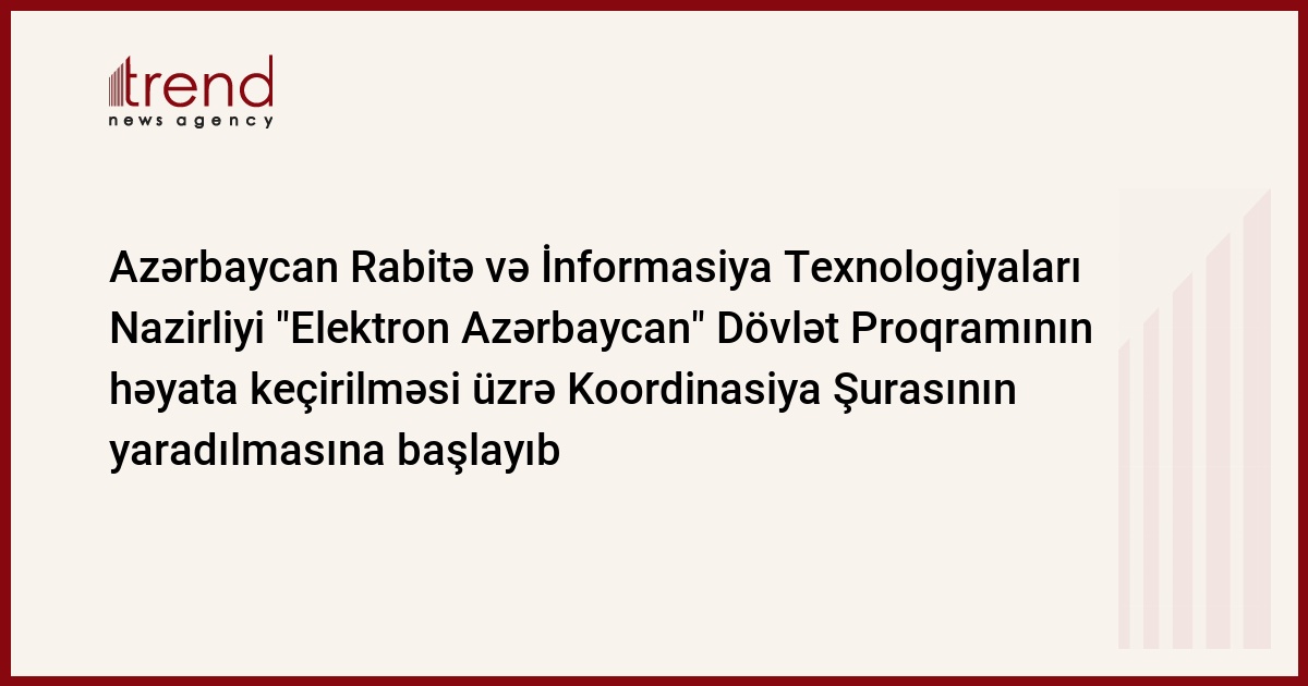 Azərbaycan Rabitə və İnformasiya Texnologiyaları Nazirliyi "2010-2012-ci illərdə Azərbaycanda rabitə və informasiya texnologiyalarının inkişafı üzrə Dövlət Proqramının (Elektron Azərbaycan)" həyata keçirilməsi üzrə koordinasiya şurasının yaradılması məsələsini nəzərdən keçirməyə başlayır. Bu barədə çərşənbə günü Azərbaycan Rabitə və İnformasiya Texnologiyaları Nazirliyinin mətbuat xidmətinin rəhbəri Müşfiq Əmirov deyib.