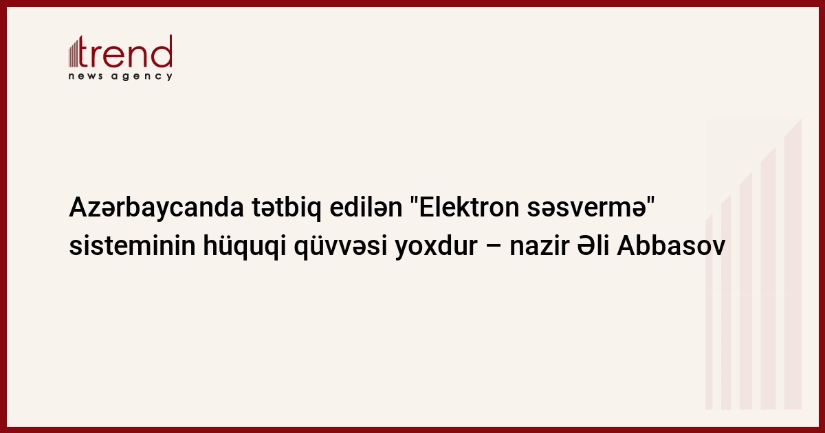 Qarşıdan gələn parlament seçkilərində tətbiq ediləcək "Elektron səsvermə və ictimai fikrin müəyyən edilməsi" sisteminin hüquqi qüvvəsi yoxdur və yekun səsverməni əks etdirə bilməz. Bu barədə cümə axşamı Azərbaycan rabitə və informasiya texnologiyaları naziri Əli Abbasov deyib.