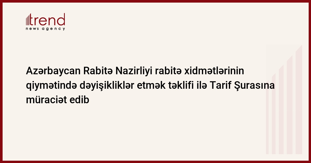 Azərbaycan Rabitə və İnformasiya Texnologiyaları Nazirliyi rabitə xidmətlərinin qiymətində dəyişikliklər etmək barədə təkliflə Tarif Şurasına müraciət edib. Bu barədə bazar ertəsi Azərbaycan rabitə və informasiya texnologiyaları nazirinin müavini İltimas Məmmədov deyib. O, hansı tariflərdə endirim, hansında artım olacağını dəqiq deməyib.