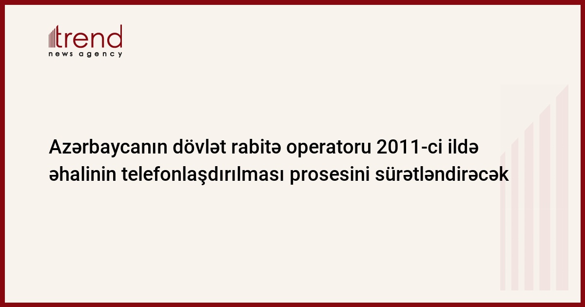 Azərbaycan Rabitə və İnformasiya Texnologiyaları Nazirliyinin "Aztelekom" İstehsalat Birliyi respublikanın bütün ərazisi üzrə əhalinin telefonlaşdırılması prosesini sürətləndirməyi planlaşdırır. Bu barədə İB-nin baş direktoru Məhəmməd Məmmədov deyib.