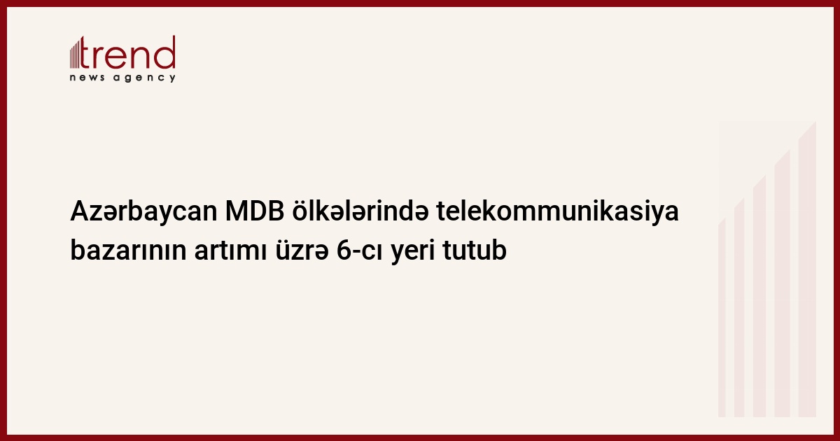 Azərbaycan MDB ölkələrində telekommunikasiya bazarının artımı üzrə 6-cı yeri tutur. Bu barədə Britaniya-ABŞ analitik şirkəti PMR-in 2010-cu ildə MDB ölkələrində telekommunikasiya bazarının vəziyyəti üzrə dərc edilən hesabatında deyilir.