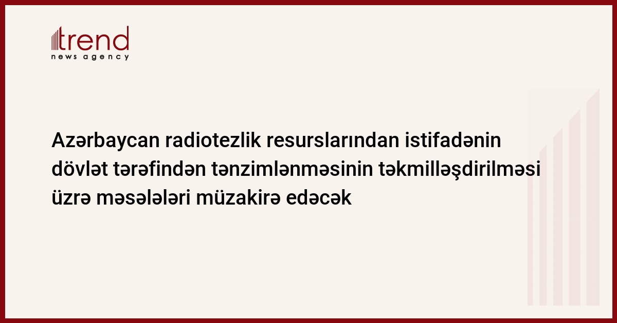 Azərbaycan Rabitə və İnformasiya Texnologiyaları Nazirliyinin Dövlət Radiotezliklər İdarəsi (DRİ) Beynəlxalq Telekommunikasiya İttifaqı tərəfindən MDB ölkələri üçün təşkil edilən "Radiotezlik resurslarından istifadənin idarə edilməsinin iqtisadi üsulları" seminarının işində iştirak edəcək. Bu barədə çərşənbə günü DRİ-nin məlumatında deyilir.