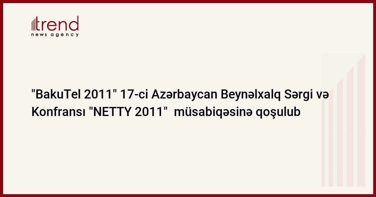 "BakuTel 2011" 17-ci Azərbaycan Beynəlxalq Telekommunikasiya və İnformasiya Texnologiyaları Sərgi və Konfransı bu il də "NETTY 2011" Azərbaycan Milli İnternet Mükafatı müsabiqəsinə tərəfdaşlardan biri qismində qoşulub. Trend-in məlumatına görə, bu barədə cümə günü "Iteca Caspian LLC" şirkətinin məlumatında deyilir.