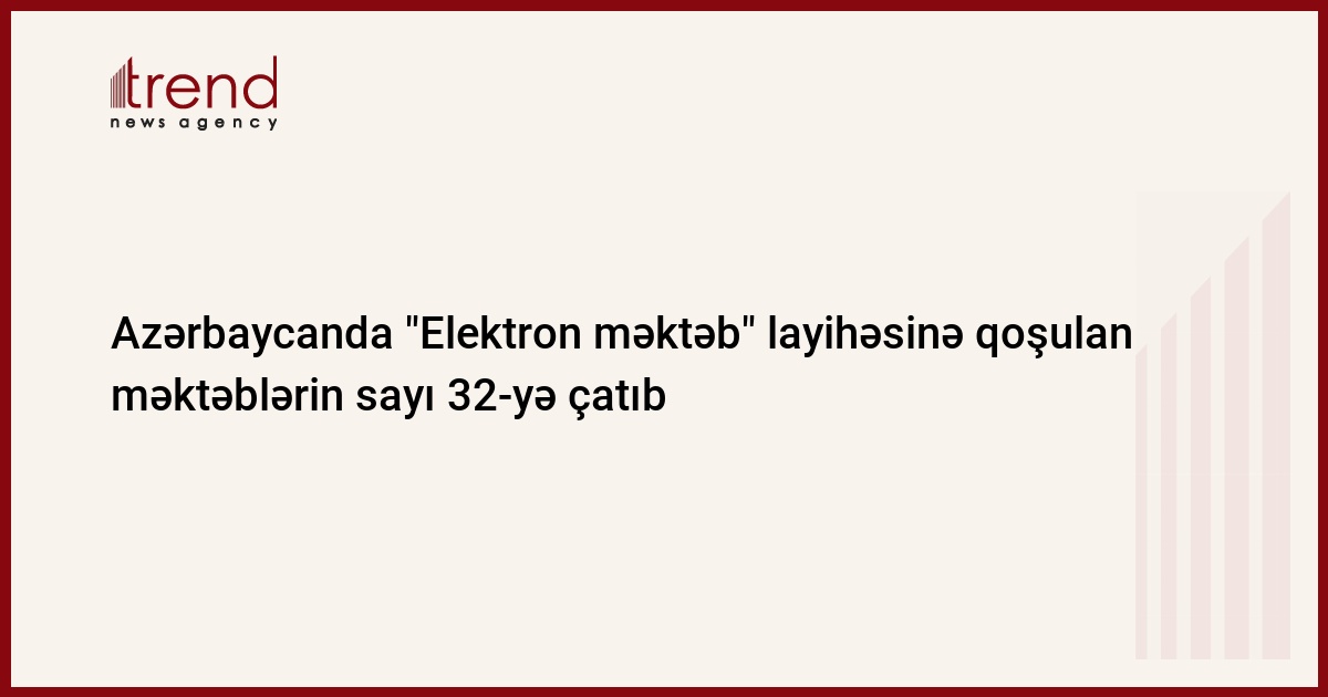 Azərbaycanda "Elektron məktəb" (e-Scholl) layihəsinə qoşulan məktəblərin ümumi sayı 32-yə çatıb. Bu barədə çərşənbə günü Trend-ə Təhsil Nazirliyi yanında Təhsil Sisteminin İnformasiyalaşdırılması İdarəsinin rəisi Samir Məmmədov deyib.