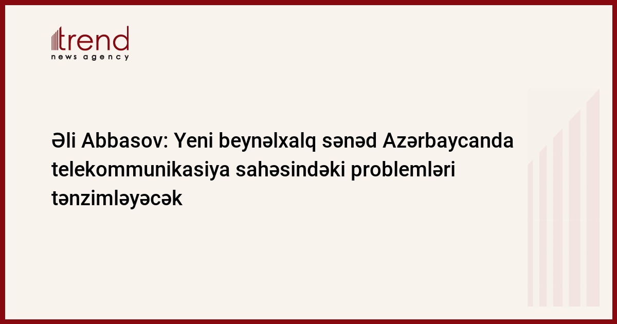 Telekommunikasiya sahəsinin nizamlanması üzrə yeni beynəlxalq sənədin qəbulu Azərbaycanda bu sahədə uzun müddətdən bəri yığılıb qalmış məsələlərin həllinə imkan yaradacaq. Trend-in məlumatına görə, bu barədə Azərbaycanın rabitə və informasiya texnologiyaları naziri Əli Abbasov cümə axşamı jurnalistlərə bildirib.
