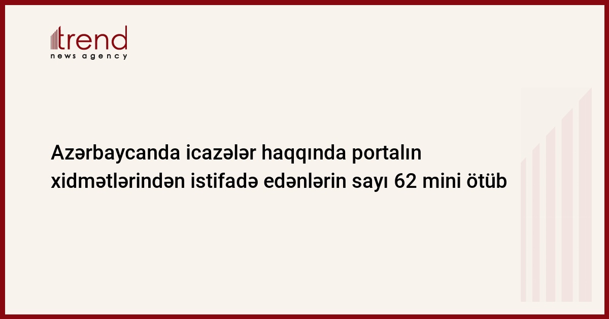 Bu ilin noyabr ayında 10 mindən çox internet istifadəçisi İqtisadi İnkişaf Nazirliyi tərəfindən yaradılmış www.icazeler.gov.az portalının xidmətlərindən istifadə edib. Trend-in məlumatına görə, b barədə İqtisadi İnkişaf Nazirliyinin bazar ertəsi yaydığı məlumatda deyilir.
