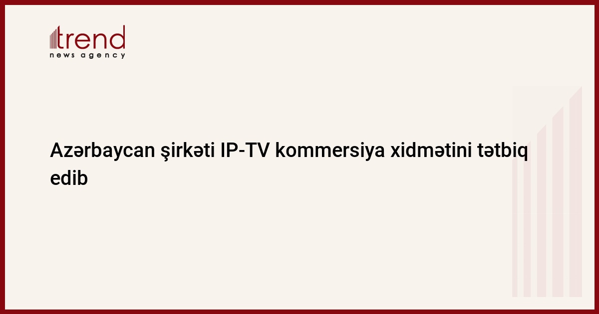 "Smart Systems Technology" şirkəti IP-TV kommersiya xidmətini tətbiq edib. Bu barədə Trend-ə şirkətdən məlumat veriblər.