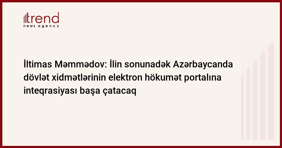 İlin sonuna kimi "Elektron hökumət" portalında təmsil olunan dövlət idarələrinin xidmətləri bir-biri ilə birləşdiriləcək. Trend-in məlumatına görə, bu barədə çərşənbə günü rabitə və informasiya texnologiyaları nazirinin müavini İltimas Məmmədov Milli məkanın informasiya sistemlərinin ictimai təqdimat mərasimində bildirib.