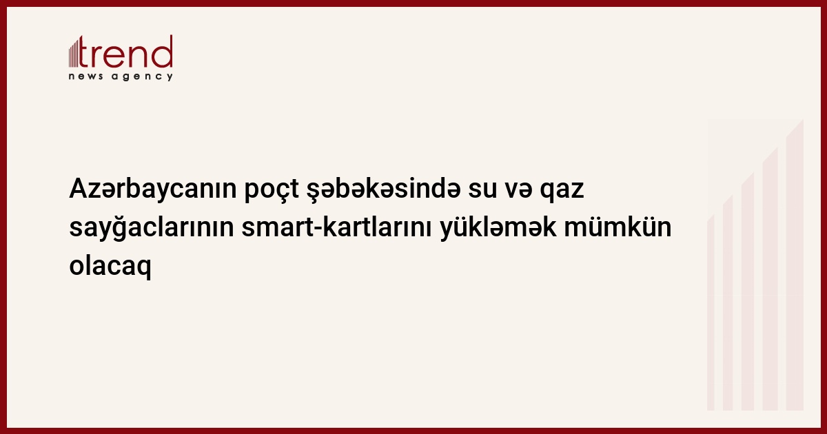 Qaz və su üzrə kommunal xidmətlərin haqqının ödənişi üçün istifadə olunan smart-kartları "Azərpoçt" MMC-nin şəbəkəsində yükləmək mümkün olacaq. Bu barədə Trend-ə Rabitə və Yüksək Texnologiyalar Nazirliyindən məlumat verilib.