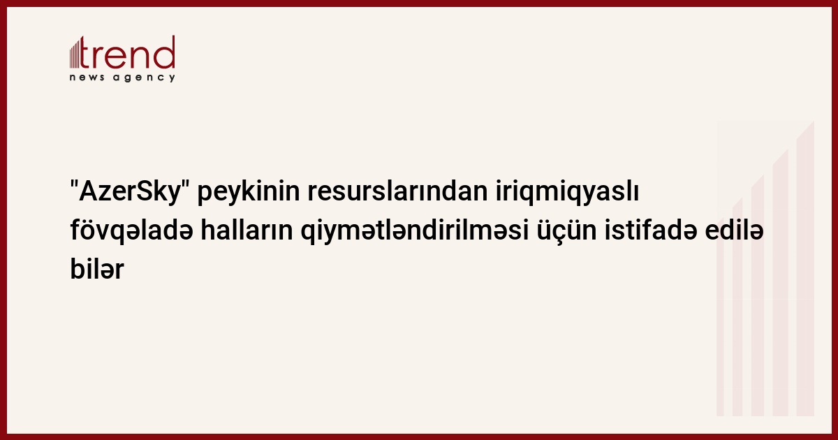 ASC-dən bildiriblər ki, peykin resurslarından iriqmiqyaslı fövqəladə halların qiymətləndirilməsi və aradan qaldırılması üçün istifadə edilə bilər: "Bura zəlzələ, daşqın, neftlə çirklənməni aid etmək olar".