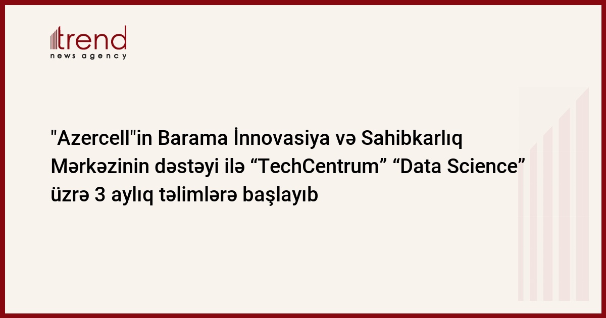 “Azercell Telekom”dan Trend-ə verilən məlumata görə, mərkəz İT sahəsinə olan marağı, eyni zamanda mütəxəssislərin azlığını nəzərə alaraq, az-təminatlı və tədrisə yetərli büdcəsi olmayan seçilmiş tələbələr üçün “TechCentrum” platformasının təşkilatçılığı ilə “Data Science” təlimlərinə başlayıb.