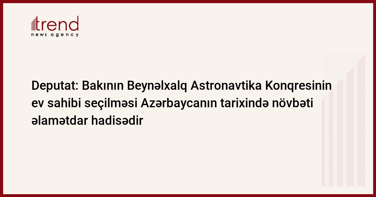 Beynəlxalq Astronavtika Federasiyasının Baş Assambleyasında keçirilmiş seçkilərdə Bakı şəhərinin 2022-ci ildə Beynəlxalq Astronavtika Konqresinə ev sahibliyi etmək hüququ qazanması müstəqil Azərbaycanın tarixində növbəti əlamətdar hadisədir.