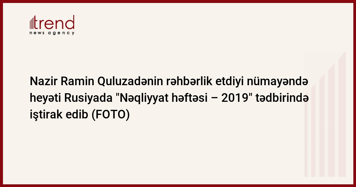 Azərbaycan Respublikası Nəqliyyat, Rabitə və Yüksək Texnologiyalar naziri Ramin Quluzadənin rəhbərlik etdiyi nümayəndə heyəti "Nəqliyyat həftəsi – 2019" tədbirində iştirak etmək məqsədilə Moskva şəhərinə səfər edib.