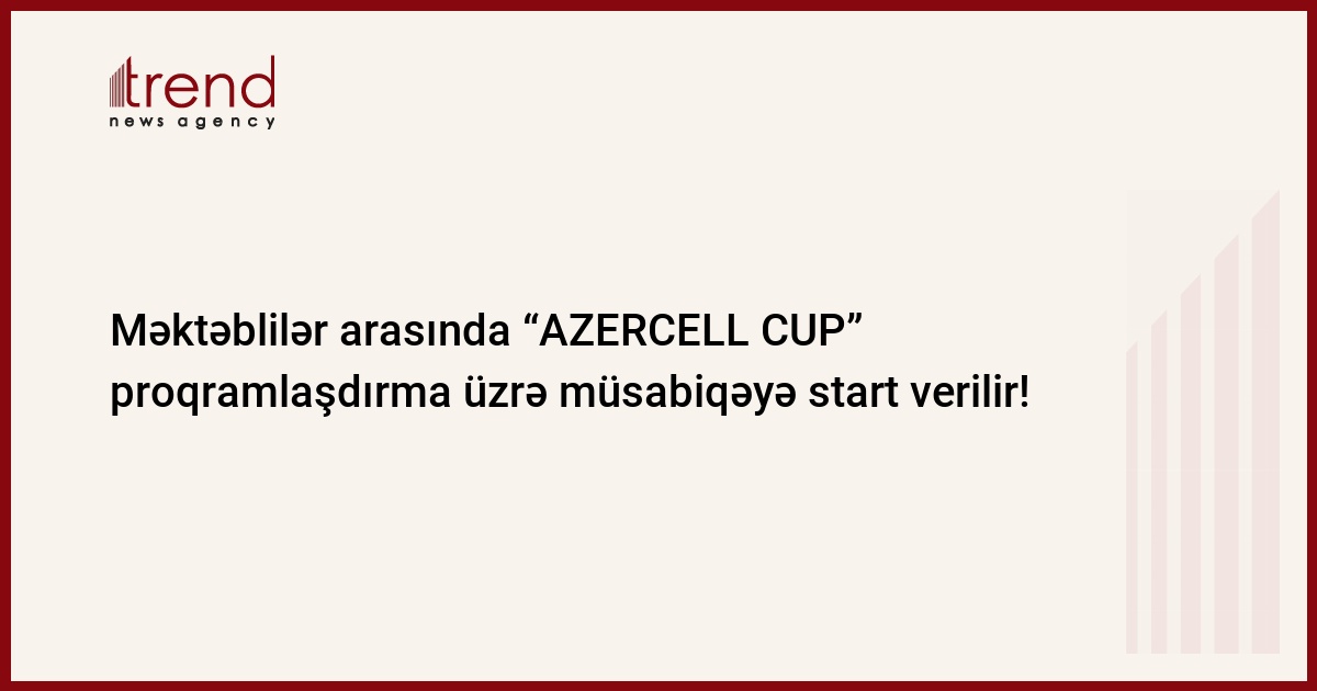 Azərbaycan Respublikası Təhsil Nazirliyi və İnformatika üzrə Milli Olimpiada komandasının məğrur tərəfdaşı “Azercell Telekom” MMC proqramlaşdırma üzrə “AZERCELL CUP” müsabiqəsini elan edir. 5-7-ci sinif şagirdlərinin iştirak edə biləcəyi bu tədbir lider mobil operatorun 25 illik yubileyinə həsr olunub.