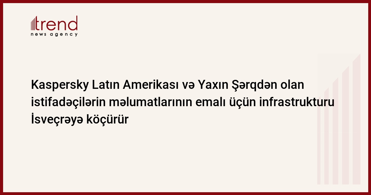 Kaspersky istifadəçi məlumatlarının İsveçrəyə köçürülməsi üzrə genişmiqyaslı layihəni davam etdirib. Şirkət bu dəfə Yaxın Şərq və Latın Amerikası regionlarından məlumat köçürülməsini həyata keçirib.
